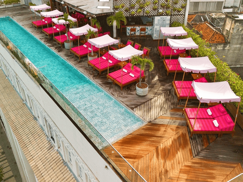 O Fera Palace Hotel, localizado na histórica Rua Chile, no centro da cidade, traz um toque especial para esta temporada de verão com uma parceria exclusiva com a grife internacional Carolina Herrera. Desde o último sábado (25) e até o fim do verão, o rooftop do hotel, conhecido por sua vista deslumbrante para a Baía de Todos os Santos, ganhou um novo visual com as emblemáticas listras vermelhas e rosas da marca, que adicionam um charme contemporâneo ao espaço.