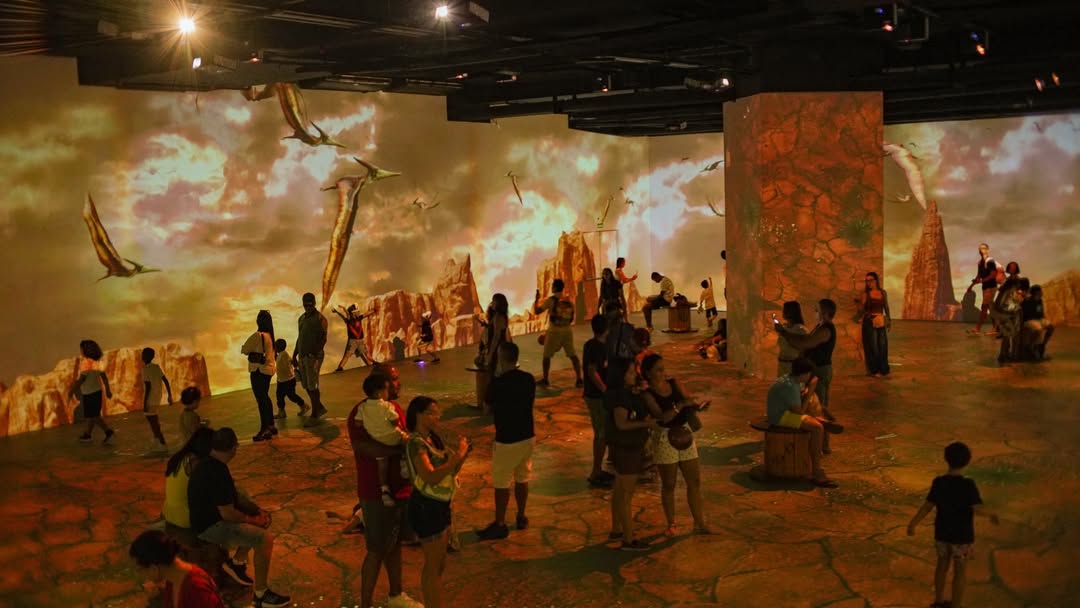 A experiência inclui show de superprojeções 360º com duração de cerca de 30 minutos. No espaço ‘Floresta dos Dinossauros’, há a simulação da atmosfera de uma floresta jurássica, com réplicas de dinossauros animatronics.