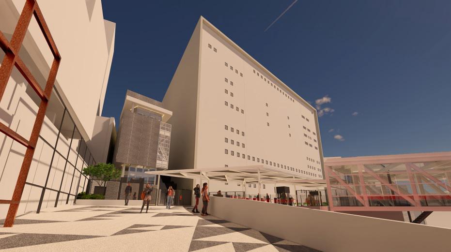 Além disso, será construído um novo prédio, conhecido como “edifício lâmina”. A estrutura vertical será implantada ao lado da sala principal, conectando a rua Leovigildo Filgueiras, no Garcia, à Esplanada do teatro. O objetivo é ampliar a mobilidade e a acessibilidade para o público e profissionais que atuam no equipamento.