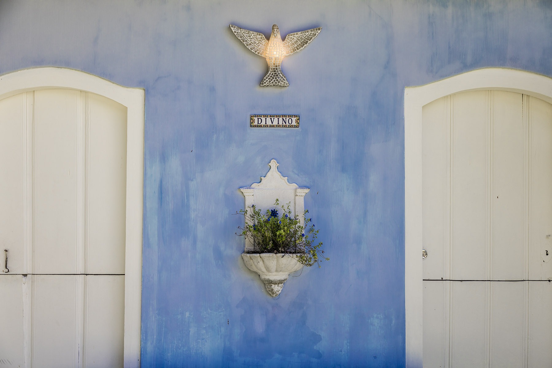 O luxo chegou! Hotéis sofisticados, restaurantes disputados, festas que atravessam a madrugada mas no centro histórico, as fachadas continuam baixas, as portas continuam simples e as janelas continuam enquadrando sombra e cor. É justamente aí que o meu “olhar-artista” aguça. Enquanto fotografei, me aproximei dos detalhes e extraí as geometrias que o meu olhar alcançou. Madeira marcada pelo tempo, texturas da parede irregular, camadas de tinta que revelam manutenção constante. Nada é sofisticado demais, nada é descuidado demais. Existe equilíbrio. Talvez por isso Trancoso seja especial para a Bahia. Ele preserva uma ideia de Brasil que não se apoia em monumentalidade e, sim, numa escala, no chão denso do alto de uma falésia.